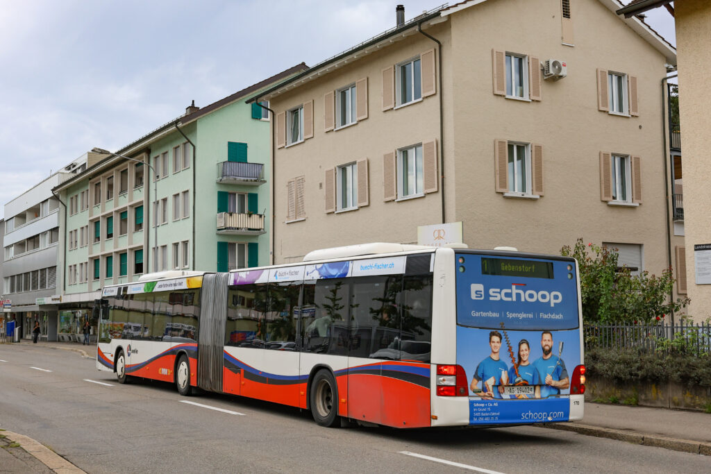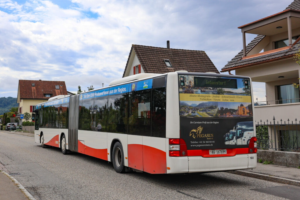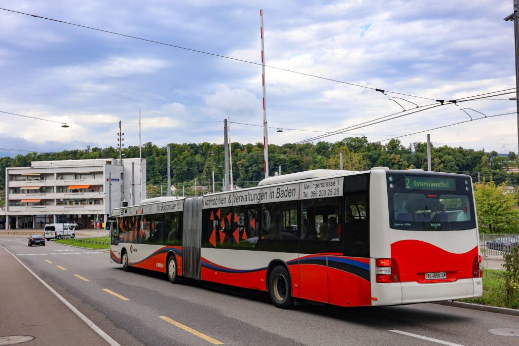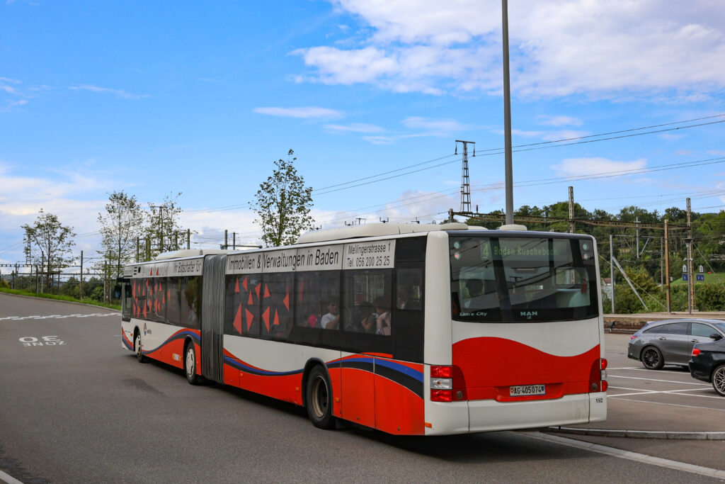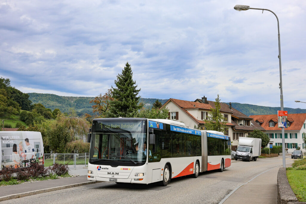 MAN A23 Lion’s City G n°167 / Ligne 2 / Grand-CasinoSolaris Urbino 18 III n°187 / Ligne 2 / Baden, FreihofScania Citywide LF II 12M BEV n°41 / Ligne 5 / Ennetbaden, Schiefe BrückeMAN A23 Lion’s City G n°172 / Ligne 2 / Ennetbaden, GoldwandMAN A23 Lion’s City GL n°192 / Ligne 2 / MAN 19C Lion’s City NG360 EfficientHybrid n°132 / Ligne 6 / Untersiggenthal, MühlewegMAN A23 Lion’s City GL n°192 / Ligne 2 / Untersiggenthal, MühlewegMAN 19C Lion’s City NG360 EfficientHybrid n°132 / Ligne 6 / Untersiggenthal, GemeindehausMAN A23 Lion’s City G n°169 / Ligne 2 / Untersiggenthal, GemeindehausMAN A23 Lion’s City G n°169 / Ligne 2 / Untersiggenthal, GemeindehausMAN A23 Lion’s City GL n°192 / Ligne 2 / Untersiggenthal, GemeindehausMAN 19C Lion’s City NG360 EfficientHybrid n°314 / Ligne 7 / Baden, KantonsspitalMAN A23 Lion’s City GL n°193 / Ligne 7 / Dättwil AG, DorfMAN 19C Lion’s City NG360 EfficientHybrid n°132 / Ligne 6 / Dättwil AG, BareggMAN 19C Lion’s City NG360 EfficientHybrid n°132 / Ligne 6 / Dättwil AG, BareggMAN 19C Lion’s City NG360 EfficientHybrid n°313 / Ligne 7 / Dättwil AG, BareggMAN 19C Lion’s City NG360 EfficientHybrid n°313 / Ligne 7 / Dättwil AG, BareggMAN 19C Lion’s City NG360 EfficientHybrid n°133 / Ligne 6 / Dättwil AG, BareggMAN 19C Lion’s City NG360 EfficientHybrid n°133 / Ligne 6 / Dättwil AG, BareggMAN A23 Lion’s City GL n°193 / Ligne 7 / Baden, KehlMAN A23 Lion’s City GL n°193 / Ligne 7 / Baden, KehlMAN 19C Lion’s City NG360 EfficientHybrid n°316 / Ligne 7 / Baden, KehlMAN 19C Lion’s City NG360 EfficientHybrid n°316 / Ligne 7 / Baden, KehlMAN 19C Lion’s City NG360 EfficientHybrid n°131 / Ligne 6 / Baden, KehlMAN 19C Lion’s City NG360 EfficientHybrid n°131 / Ligne 6 / Baden, KehlMAN A23 Lion’s City GL n°129 / Ligne 6 / Baden, KehlMAN A23 Lion’s City GL n°129 / Ligne 6 / Baden, KehlMAN 19C Lion’s City NG360 EfficientHybrid n°311 / Ligne 7 / Baden, KehlMAN 19C Lion’s City NG360 EfficientHybrid n°311 / Ligne 7 / Baden, KehlMAN 19C Lion’s City NG360 EfficientHybrid n°313 / Ligne 7 / Baden, KehlSolaris Urbino 18 IV n°10980 / Ligne 320 / Baden, Badener TorMercedes-Benz Citaro C2 G n°11548 / Ligne 322 / Baden, Badener TorSolaris Urbino 18 IV n°11258 / Ligne 321 / Baden, SchadenmühleMAN 19C Lion’s City NG360 EfficientHybrid n°132 / Ligne 6 / Baden, SchadenmühleMercedes-Benz Citaro Facelift G n°5704 / Ligne 332 / Baden, SchadenmühleSolaris Urbino 18 IV n°11580 / Ligne 354 / Limmat HochbrückeSolaris Urbino 18 IV n°11580 / Ligne 354 / Limmat HochbrückeMAN A40 Lion’s City GL n°10268 / Ligne 353 / Baden, KantonsschuleMAN A40 Lion’s City GL n°10268 / Ligne 353 / Baden, KantonsschuleMAN A40 Lion’s City GL n°10667 / Ligne 352 / Baden, KantonsschuleMAN 19C Lion’s City NG360 EfficientHybrid n°316 / Ligne 7 / Wettingen, LangensteinMAN A23 Lion’s City G n°170 / Ligne 1 / Wettingen, LangensteinMAN A23 Lion’s City G n°170 / Ligne 1 / Wettingen, LangensteinMAN A23 Lion’s City G n°168 / Ligne 1 / Würenlos, BüntenstrasseMAN A23 Lion’s City G n°168 / Ligne 1 / Würenlos, BüntenstrasseMAN 19C Lion’s City NG360 EfficientHybrid n°175 / Ligne 1 / Würenlos, RössliplatzMAN A23 Lion’s City GL n°192 / Ligne 4 / Killwangen, BahnhofMAN A23 Lion’s City GL n°192 / Ligne 4 / Killwangen, BahnhofMAN A23 Lion’s City G n°166 / Ligne 2 / Killwangen, BahnhofMAN A23 Lion’s City G n°166 / Ligne 2 / Killwangen, BahnhofMAN A23 Lion’s City G n°150 / * / Neuenhof, LandhausMAN A23 Lion’s City G n°150 / * / Neuenhof, LandhausMAN A23 Lion’s City GL n°194 / Ligne 2 / Neuenhof, LandhausMAN 19C Lion’s City NG360 EfficientHybrid n°174 / Ligne 4 / Neuenhof, LandhausUn ancien autobus Saurer stationné dans la commune de NeuenhofMAN A23 Lion’s City G n°167 / Ligne 4 / Neuenhof, PosthornMAN A23 Lion’s City G n°165 / Ligne 4 / Neuenhof, ZürcherstrasseMAN A23 Lion’s City GL n°190 / Ligne 2 / Neuenhof, ZürcherstrasseMAN A23 Lion’s City GL n°192 / Ligne 4 / Neuenhof, ZürcherstrasseMAN A37 Lion’s City NL293 n°85 / Ligne 10 Dienstfahrt / Neuenhof, ZürcherstrasseMAN A23 Lion’s City GL n°194 / Ligne 4 / Killwangen, MühlehaldeMAN A23 Lion’s City G n°194 / Ligne 4 / Killwangen, MühlehaldeSolaris Urbino 18 III n°183 / Ligne 2 / Killwangen, MühlehaldeMAN A23 Lion’s City G n°167 / Ligne 2 / Killwangen, MühlehaldeMAN A23 Lion’s City G n°167 / Ligne 2 / Killwangen, MühlehaldeMAN A23 Lion’s City G n°169 / Ligne 4 / Killwangen, MühlehaldeSolaris Urbino 18 III n°184 / Ligne 4 / Killwangen, MühlehaldeMAN A23 Lion’s City GL n°192 / Ligne 4 / Killwangen, BahnhofMAN A23 Lion’s City GL n°192 / Ligne 4 / Killwangen, BahnhofMAN 19C Lion’s City NG360 EfficientHybrid n°176 / Ligne 2 / Killwangen, BahnhofMAN 19C Lion’s City NG360 EfficientHybrid n°176 / Ligne 2 / Killwangen, BahnhofSolaris Urbino 18 III n°183 / Ligne 4 / Killwangen, BahnhofMAN A37 Lion’s City NL293 n°85 / Ligne 10 / Killwangen, BahnhofMAN A37 Lion’s City NL293 n°85 / Ligne 10 / Killwangen, BahnhofMAN A37 Lion’s City NL293 n°85 / Ligne 10 / Killwangen, BahnhofMAN A23 Lion’s City G n°169 / Ligne 2 / Killwangen, Bahnhof