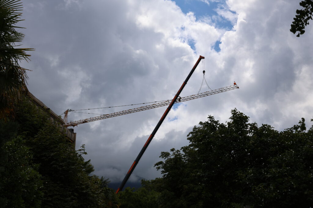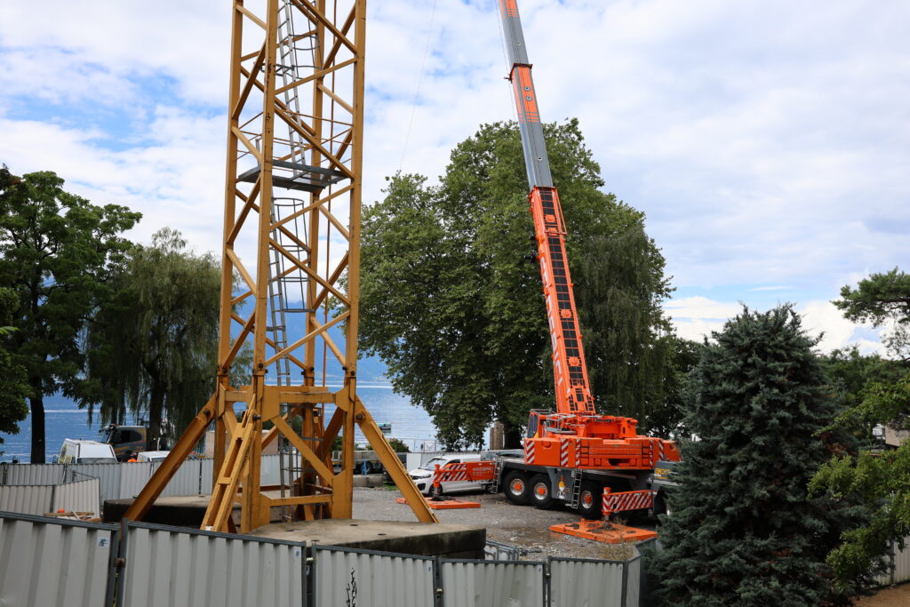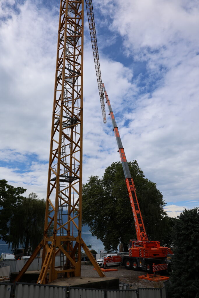 En balade à Montreux, je suis tombé par hasard sur le démontage de la Potain MD du chantier du centre des congrès de Montreux (2m2c)…
